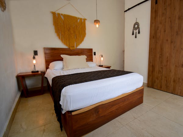 Perfecta para parejas o viajeros solos que buscan comodidad y descanso. Nuestra habitación sencilla cuenta con una cama matrimonial equipada con sábanas suaves y almohadas cómodas. Espaciosa, fresca y luminosa, ideal para relajarse después de un día de exploración.